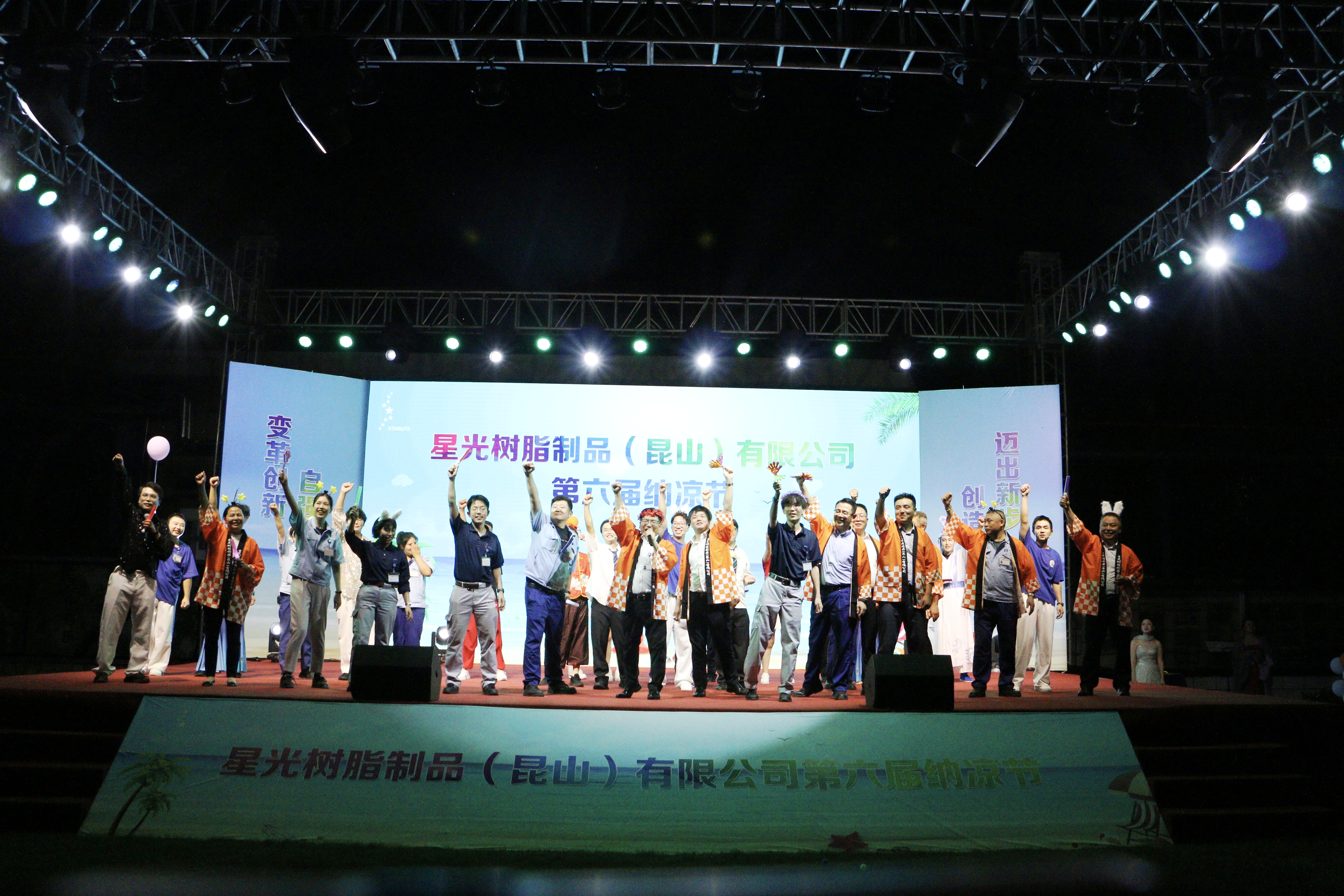 用餐后,精彩节目轮番上演。高机能事业部的动感舞蹈、共通部门的柔美傣族舞,都赢得阵阵掌声。抽奖与趣味游戏穿插其间,员工们喜笑颜开。日方驻在员也献上精彩表演,神秘魔术令人惊叹。共同部门带来的的幽默情景剧让人捧腹大笑。精化事业部同事的弹唱,更是为夏夜添浪漫。最后全员合唱,将气氛推向高潮。