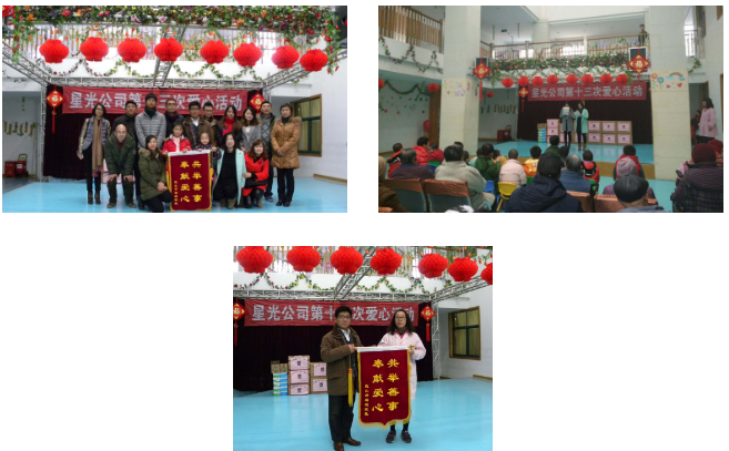 2015年12月19日下午14点星光树脂秋野副总经理、猪川部长、小山部长、小桥顾问、小林室长以及义工成员和员工的家属一行前往福利院进行慰问,陪同福利院的老人、儿童欢度圣诞节。