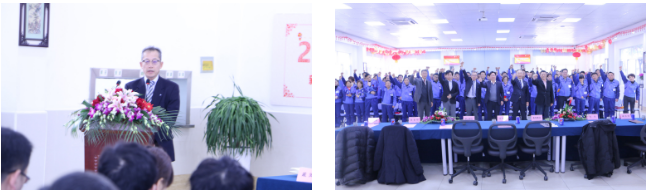 由于董事长出差,未能参加新年祝贺式,但他也通过录像给大家送来了新年贺辞。今年的星光集团将以“(新的步伐)新歩”为核心,希望成为「更加毅然决然的挑战新事物」之年。为了让这些新的挑战能结出丰硕的果实,希望大家今年一定要强化「传递」的意识,留意与同事之间,顾客之间的人际关系,努力的提高品质及客户满意度。
