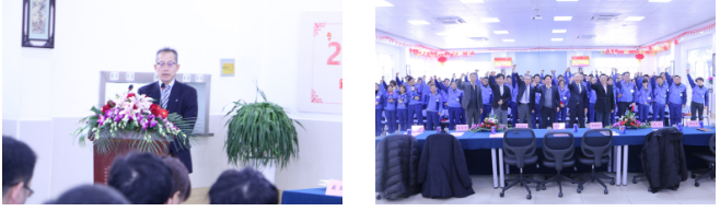 As the chairman was on his business trip, unable to participate in the New Year celebration, he sent his New Year message everyone at the site via a video clip.This year, the Group will focus on “Xinbu (New Pace)” in the hope of becoming a year of “more resolutely facing new challenge”. In order to enable these new challenges to bear fruitful results, the Chairman hope that everybody will have to strengthen their awareness of "passing" this year, paying attention to their relationships with their colleagues and customers, and striving to improve product quality and customer satisfaction.