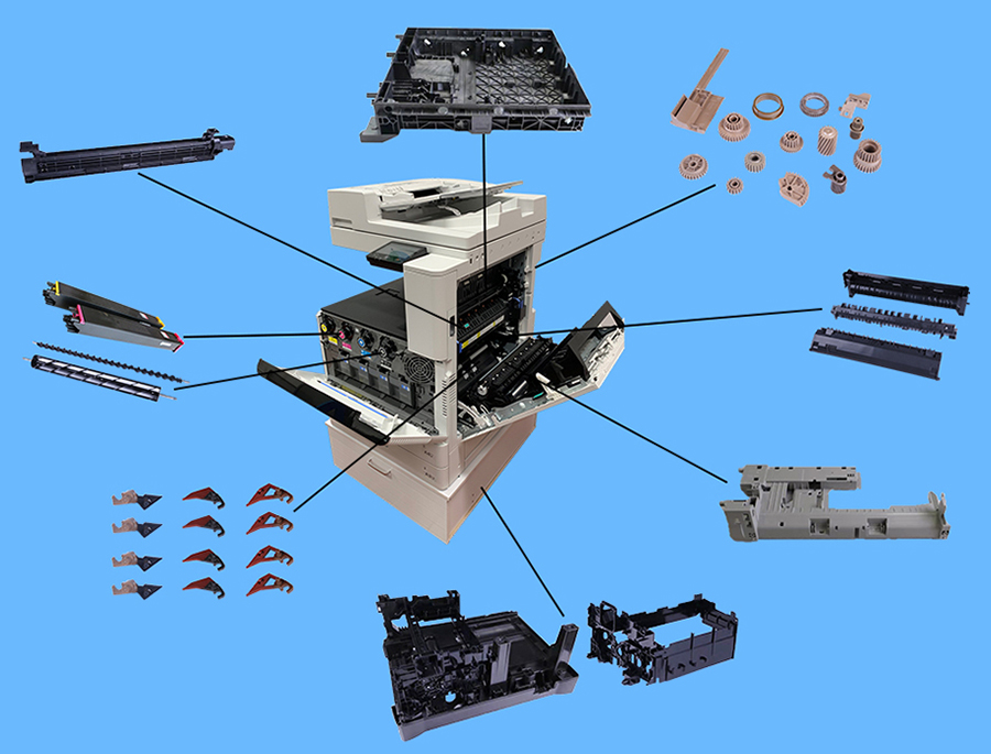 We make contributions to office automation by using the anti-friction, high-temperature, noise-free, self-lubricating “S-BEAR®” materials and precision molding technology independently developed by Starlite Group. Parts made of the "S-BEAR®” material are indispensible to the high-temperature area of automatic office equipment like drive unit and paper-stripping portion. In addition, lightweight high-precision gear units are realized by replacing metal products with our compliance technology. A variety of conveniences at all levels of business can be provided.